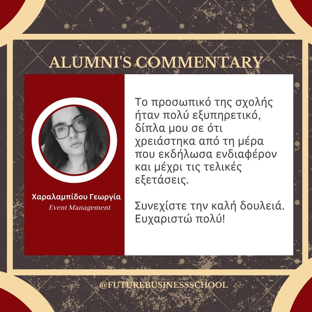Το Future Business School μου έδωσε την δυνατότητα να διευρύνω τις απόψεις μου. Μου έδωσε τις βάσεις για μια καλή επαγγελματική αποκατάσταση. Οι καθηγ...