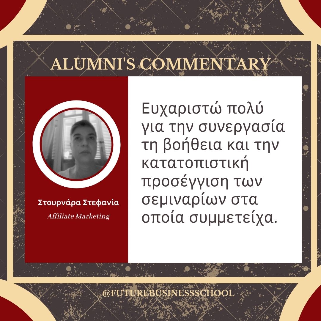 Η μέχρι τώρα εμπειρία μου στο FUTURE BUSINESS SCHOOL μου έχει δώσει ώθηση στο να επεξεργάζομαι καλύτερα κάποια δεδομένα της εργασίας μου. Αναπτύσσοντα...